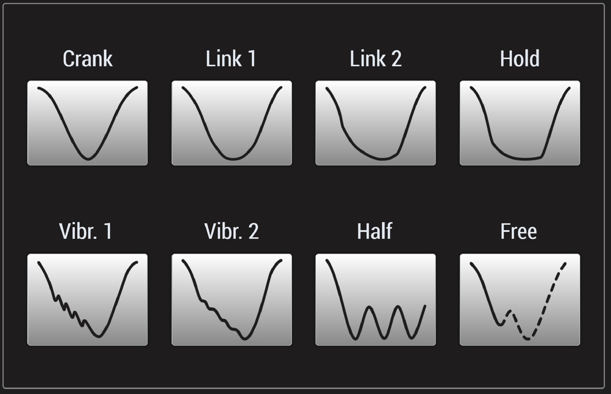 SEYIサーボプレスでは、7種類のプリセットモーション、1種類のフリーモーションを装備。ここでは、よく使用されるモーションをご紹介します。